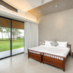 Mr. Mammen envisioned Kazuri as a villa that blends effortlessly with the land, honoring Kerala’s natural beauty.Its open design invites the lake in, creating a seamless flow between indoors and out.