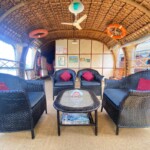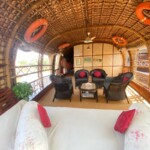 Furthermore, bask in the sunshine on the sun deck. And relish delectable Kerala cuisine in your personal dinette while observing the rhythm of life around you. As the sun sets on the horizon, you can then retire to your well-ventilated bedroom . which is equipped with eco-friendly solar-powered fans and lights. Meanwhile, let the soothing lap of water lull your senses into a peaceful night’s sleep. Moreover, awaken to the aroma of freshly brewed tea wafting from a well-equipped kitchenette. Take a moment to observe your personal chef crafting your breakfast, who, in addition, shares both a warm smile and insightful culinary tips. Ultimately, the enchantment of these moments will make you never want this magic to end.