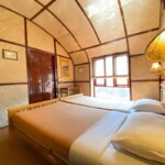 A canopy crafted from bamboo and thatched with traditional materials sets the perfect atmosphere for a river cruise that will make you yearn for time to halt. Tucked away beneath this canopy is a complete home unit, offering the conveniences of contemporary living within an authentically ethnic setting.