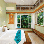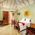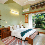 Located in the heart of Kerala’s countryside, Serenity is surrounded by swaying palms, fertile paddy fields, and the simple rhythms of rural life. Wake up to the soft rustle of paddy fields and the fresh, clean air of the countryside at this peaceful 2.5-acre retreat, a space thoughtfully created to help you unplug and recharge. The villa has five air-conditioned bedrooms with en-suite bathrooms. Whether you’re seeking a brief, restorative getaway or supporting a loved one on their healing journey, Serenity provides the perfect balance of space, comfort, and calm. The farm thrives with an array of fruit trees – nutmeg, rambutan, jackfruit, coconut, bilimbi, jamun, rose apple, mangosteen, star fruit, and more, each one a testament to the rich, fertile bounty of Kerala’s soil.